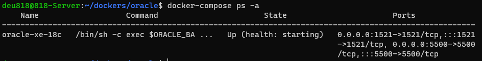 State에서, (health: starting) 이라고 뜨면 컨테이너가 켜지는 중이라는 뜻입니다. (healthy)가 될 때까지 기다려야 합니다. 저는 약 6~8분정도 걸렸습니다. 아마 초기 세팅때문에 조금 오래 걸린 것 같네요.