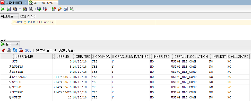 비밀번호는 ORACLE_PWD 환경변수를 수정하여 변경할 수 있습니다.