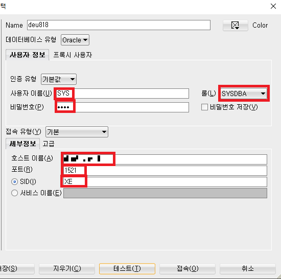 sqldeveloper를 사용하여 방금 생성한 Oracle Database 컨테이너에 연결합니다.